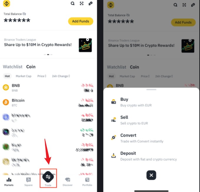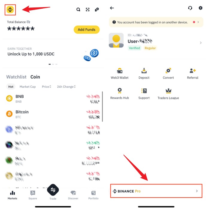 1.点击首页左上角的币安图标,然后选择底部的【币安专业版】,切换至专业版。
