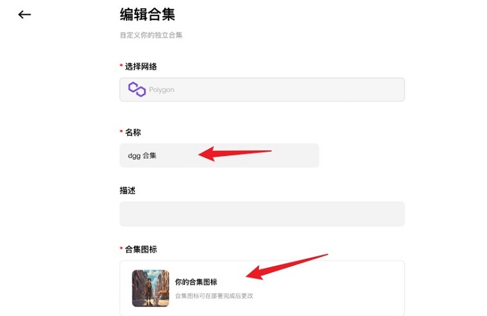 打开项目方资产合约管理员地址,选中需编辑的合集,点击编辑,进行项目信息编辑;