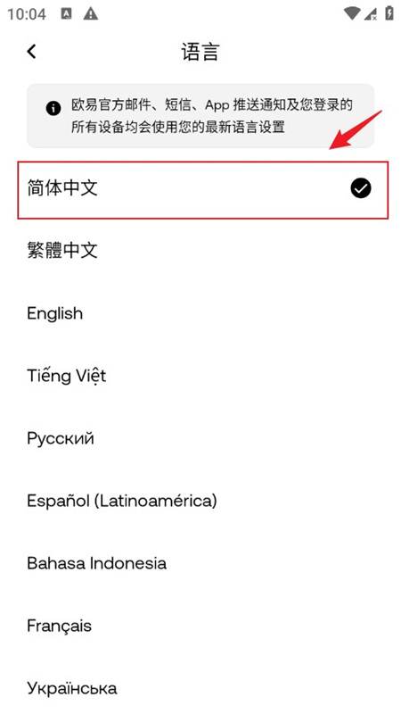5、点击进去找到简体中文,点击简体中文即可成功更改语言啦。