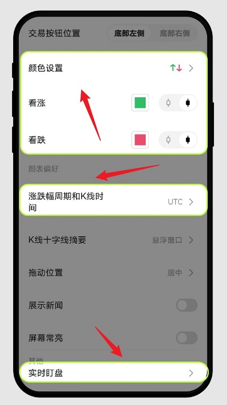 1.K线颜色设置:默认情况下,绿色代表上涨,红色代表下跌。您也可根据个人偏好调整,提升视觉辨识度。