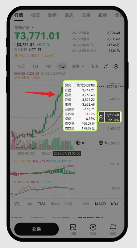 2.周期调整:周期选项通常位于图表顶部或侧边栏,支持快速切换不同时间框架。短线交易者可选择1分钟、5分钟等短周期,而长线交易者则更关注日线或周线。