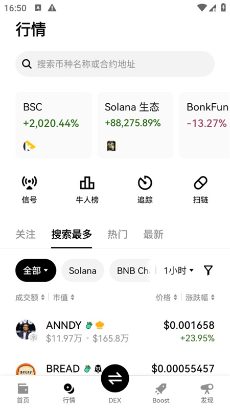 (1)价格信息:展示该币种的最新价格、最高价、最低价、成交额和所属模块等信息。