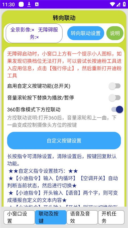 [空白键]实际是有360的车型打开全景影像的,所有有全景影像的不要自定义这个。