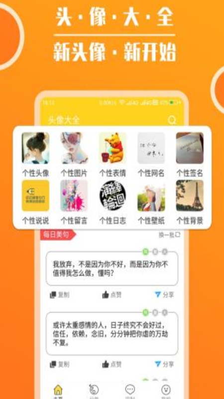 2.个性分类:采用10大主类+200个子类的精细化标签系统,如唯美意境、非主流风格等,便于用户快速筛选符合自身审美的头像;