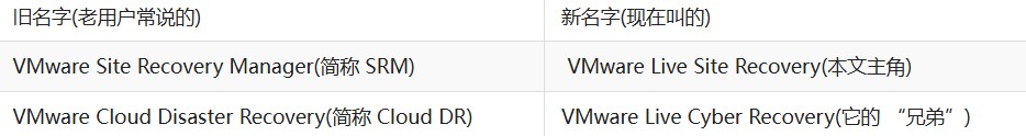3.很多老用户可能听过 “VMware SRM”,其实那就是它的旧名字!VMware 后来给一批产品改了名,怕你 confusion,先记好这俩 “新旧名对应”: