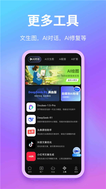 爱创助手app官方最新版是一款AI创作相关的手机工具,为创意设计人士、自媒体创业者提供了多种工具,能实现AI聊天、短视频创作、文本生图等功能,功能还是挺丰富的。