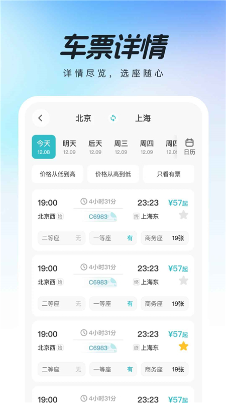 1.实时查询: 提供最新的高铁票信息,包括余票、时刻表和票价。