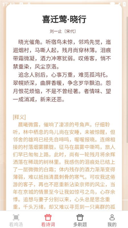 1.丰富内容:集心灵鸡汤、古诗词及刷题于一身,满足用户不同的阅读和学习需求。