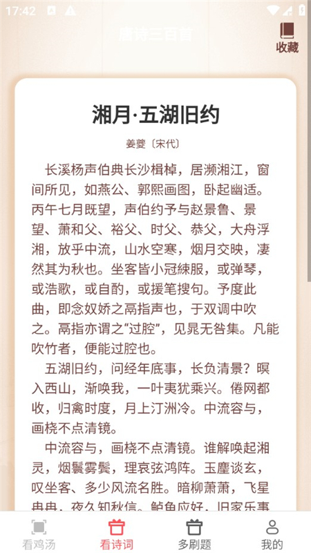 提供诗词背诵和理解测试,帮助用户更好地掌握古诗词的韵味和文化内涵。