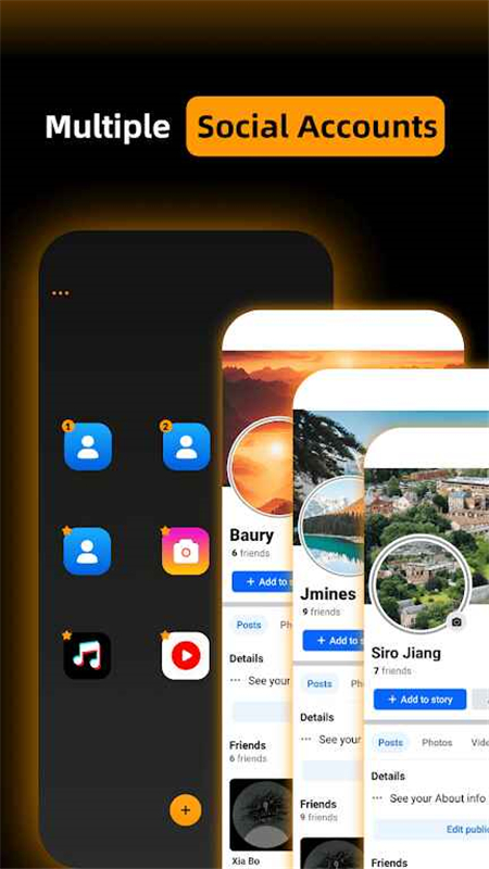 1.账户管理:轻松添加、删除或切换各种社交媒体和应用账户,如微信、QQ、Facebook等。
