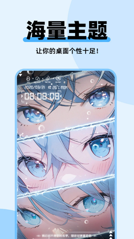 1、海量高清主题资源库:汇聚动态壁纸、静态美图、3D特效、明星写真等超万款主题资源,覆盖风景、动漫、游戏、科技等全品类风格。每日更新热门IP联名主题,如热门影视、游戏角色定制款,满足用户对个性化桌面的极致追求。