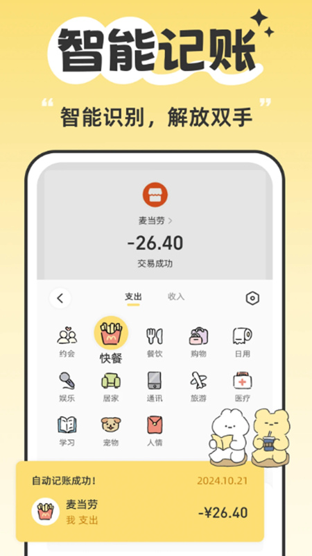 2、全场景账单自动归类:支持银行卡、支付宝、微信等200+支付渠道账单自动同步,AI智能识别消费类型(餐饮、交通、娱乐等),并生成可视化图表。用户可自定义标签(如“宠物开支”“健身费用”),让每一笔钱都“有迹可循”,告别手动整理的繁琐。