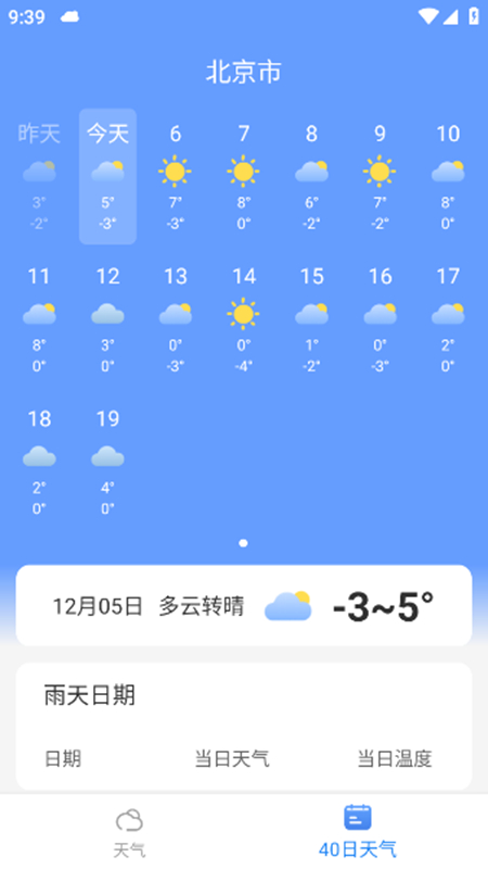 2、超长预测智能规划:支持未来15天逐日天气预报,涵盖温度、湿度、风力、紫外线等12项核心指标。用户可提前规划长途旅行或户外活动,如根据未来3天降雨概率决定是否携带雨具,避免因天气突变影响行程。