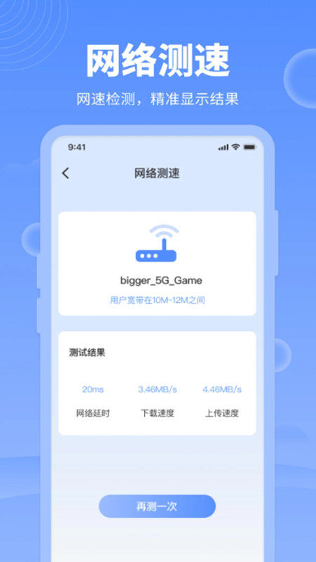 1、集成智能测速、Ping检测、DNS解析、路由追踪四大工具,可快速定位网络卡顿、断连、延迟高的根源。支持一键生成网络健康报告,用可视化图表展示丢包率、信号强度、带宽占用等关键指标,普通用户也能轻松读懂。