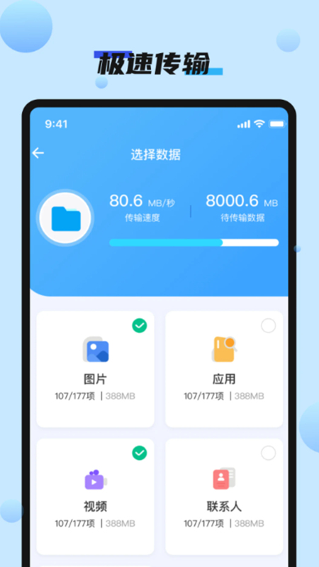 手机搬家快速换机app安卓版是一款专为安卓用户打造的一站式数据迁移神器。无需数据线,无需复杂设置,一键即可实现新旧手机间的数据快速传输,包括联系人、短信、照片、视频、应用等。