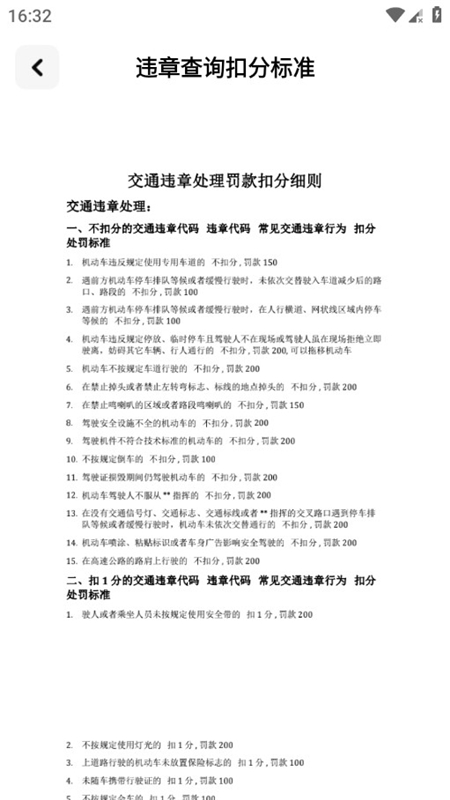 3.违章详情透明:显示具体违规时间、地点、罚款金额、扣分说明等详细信息。