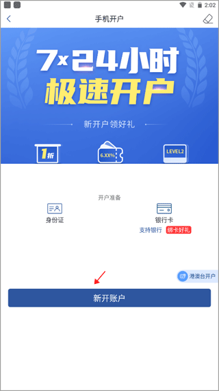 1、进入软件首页,点击上方的“开户”,也可以切换到【我的】中点击开户功能。