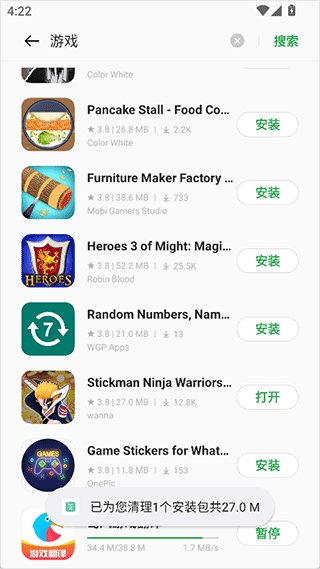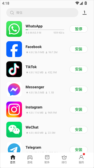 下载与安装应用:点击所需应用或游戏的详情页,查看相关信息,如应用大小、版本、评分等,然后点击下载按钮进行下载和安装。