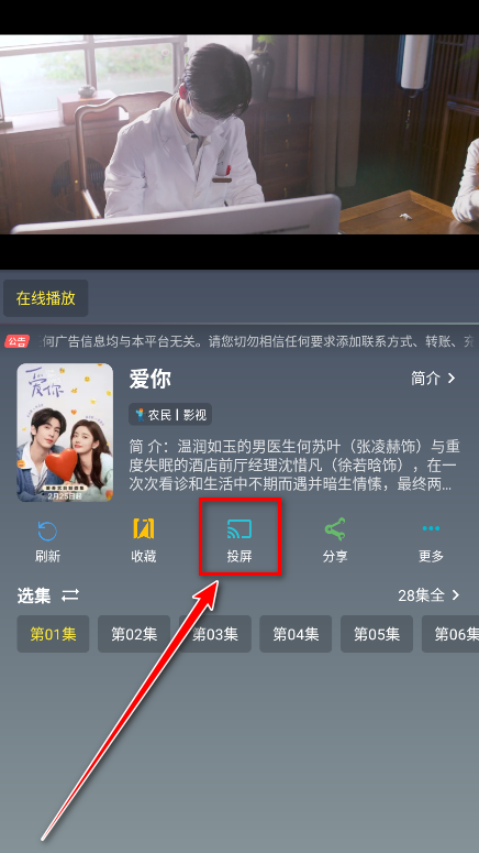 3.点击投屏。(注意的是需要先注册登录哈)