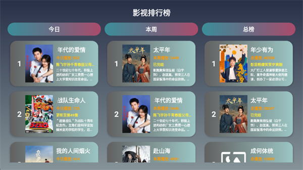 投屏功能:支持手机、平板投屏至电视,扩大观看视野,提升大屏体验。
