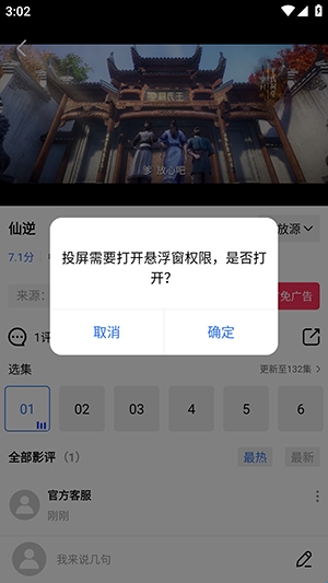 6、授权软件悬浮窗权限,开启后,返回软件再次点击投屏按钮。