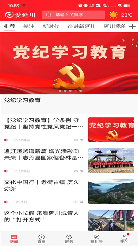 开设了新闻、直播、电视、广播、服务、“延川号”等栏目,