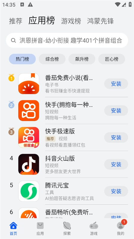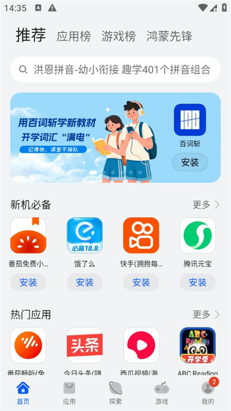 《华为应用市场》是款华为匠心打造的手机应用市场、有了它你可以随时随地的在这里下载各种APP、在这里你可以轻松的选择软件进行下载、此外也能在华为应用市场中进行游戏的下载、可说是非常不错的掌上应用市场