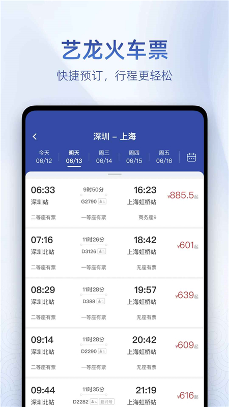 信息准确:各类普通车次、高铁、动车信息实时查询,专业精确不误车;