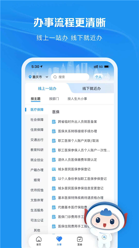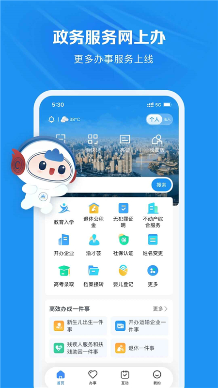 重庆市政府渝快办app官方客户端是专为重庆市民打造的政务服务软件,提供公积金查询、社保缴费、世界新闻、热点资讯等功能,极大了方便了市民生活,用户可以轻松在线办理业务,感兴趣的小伙伴欢迎来本站下载!
