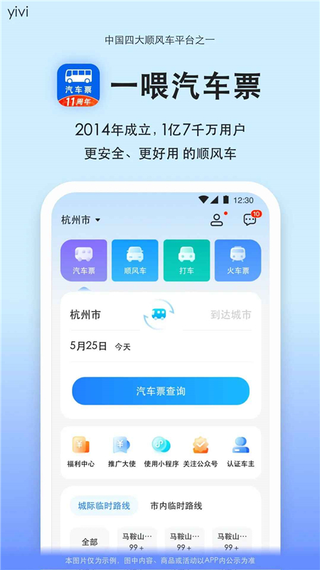 1.一喂汽车票App是一款专业的汽车票在线预订平台,致力于为用户提供便捷、快速、安全的汽车票购买服务。
