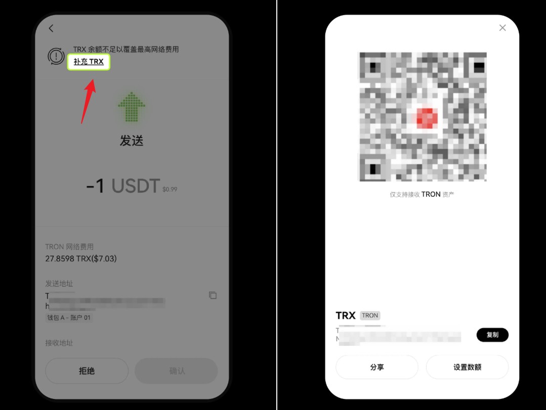 如所需手续费无法通过钱包中的交易兑换时,您可通过钱包收币的方式进行补充。