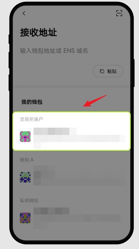 在填写接收地址页面,系统会自动推荐当前登录的交易所账户的接收地址。