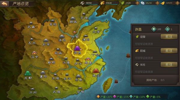 地图上分布着许多中立的城池,攻占后可以为联盟提供资源加成和各种增益。而终极目标是地图中心的洛阳。只有最强的联盟,才能在赛季末占领洛阳,实现一统天下的霸业。