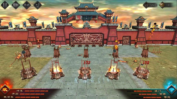 城池发展:你需要升级城内的各种建筑,如农田、伐木场、铁矿场、石料厂,来生产资源。同时,军事建筑如兵营、校场、点将台则决定了你的军队强度和带兵数量。