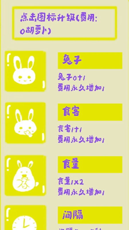 2.成长升级体系:通过积累收益,玩家可以对胡萝卜进行升级,提升其产出效率,感受角色成长带来的成就感。
