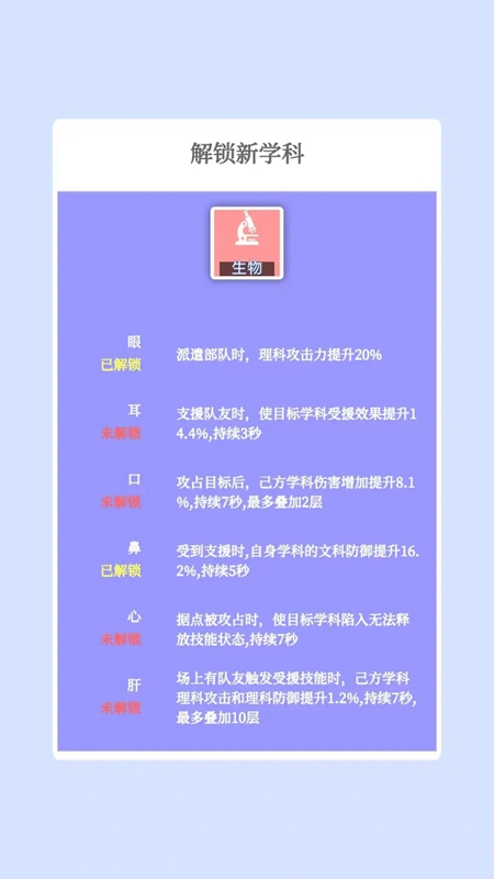 1.解锁学科激励:通过闯关可解锁新学科,激发玩家的探索欲望与成就感。