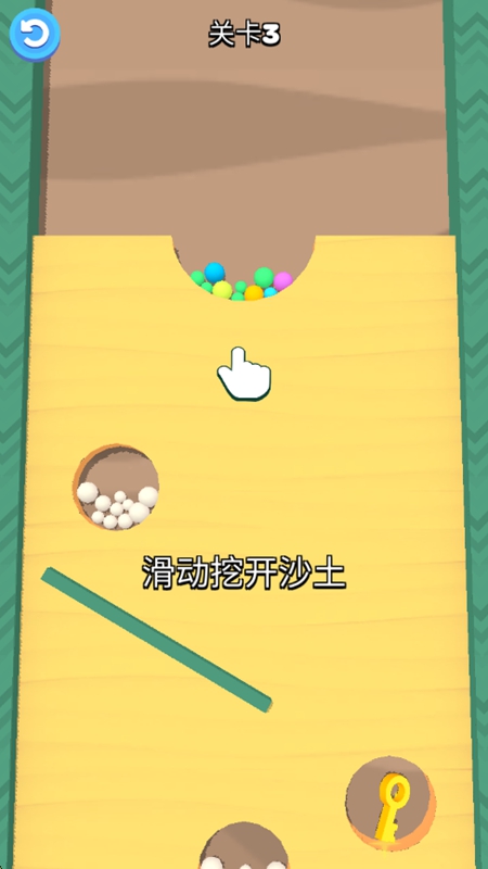 2.独特游戏玩法:核心玩法别具一格,要求玩家充分发挥智慧与创造力,根据不同的关卡地形与障碍物分布情况,巧妙地规划小球的滚动路径,通过挖沙、绘制通道等方式让小球顺利到达目的地。