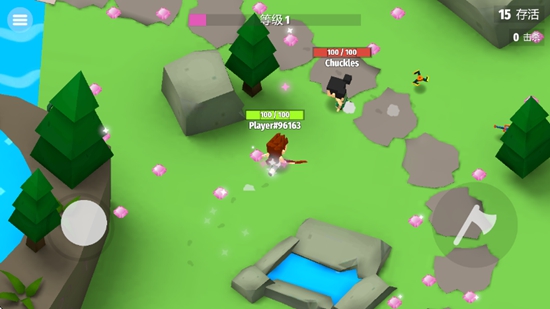 1.地形利用策略:玩家可以借助地形优势进行战斗,如隐蔽自己埋伏敌人、抢夺其他玩家的武器等,增加了游戏的策略性和趣味性。