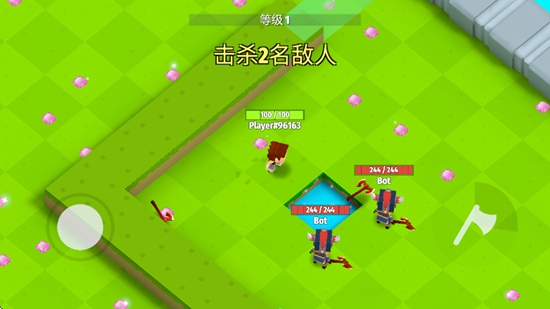 2.畅快淋漓的激情对战:简单的机制却耐玩十足,玩家可以扔出飞斧击杀敌人后捡起来继续攻击,也能猥琐发育收集更多斧头对敌人展开连射,战斗过程紧张刺激。