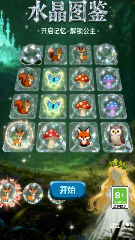水晶图鉴游戏是一款结合速记与消除玩法的益智小游戏。玩家需在众多水晶球中找出三个相同的动物图案进行消除,同时探索并找到公主隐藏的神秘水晶球!