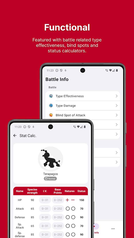 2.对战辅助工具:内置属性克制表、能力值计算器和打击盲点分析,优化战斗策略。