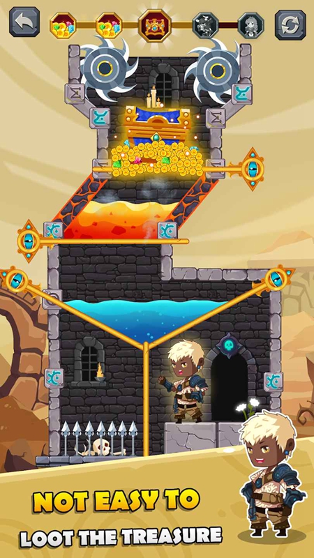 营救大头针无限金币破解版是一款烧脑益智的拉针闯关游戏,玩家将化身骑士,通过正确拉动大头针的顺序来消灭怪物、解救公主并获取宝藏!