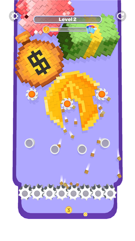 关卡中会出现像素碎片或金币,收集它们可用于升级角色或解锁新装备。