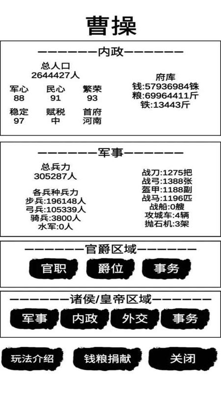 3.简约风格:游戏采用简约的文字风格,没有复杂的插图和动画效果,但通过细腻的文字描绘出一个宏大的三国世界。