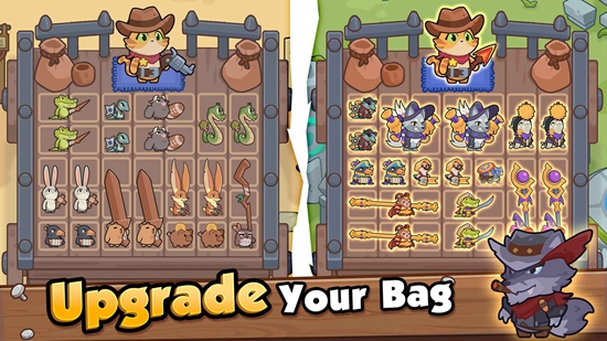 Rumble Paws背包战争无限钻石无限金币版是一款将背包管理与策略战斗深度融合的休闲竞技手游。玩家将化身猫猫牛仔,通过招募动物伙伴、合成装备、合理规划背包空间,在随机生成的关卡中抵御怪物入侵或与其他玩家实时对战!