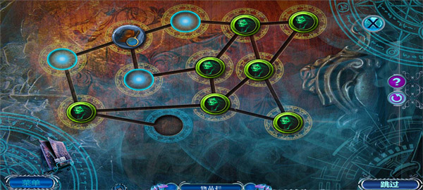 11、拿走书柜上的开锁器和木板,拿走右边圆桌上的特殊眼镜,可以查看蓝色迷雾;