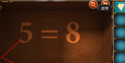 1、点中间桌子,收取胶带。点左边纸签,再点一次记录下上面的数字提示,4=5,及蓝色圆点提示