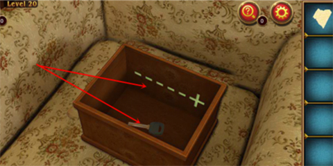 4、点门,再点沙发上的盒子,按表针移动的位置点盒盖上的字母,全部正确会都亮起,盒子打开,收取钥匙