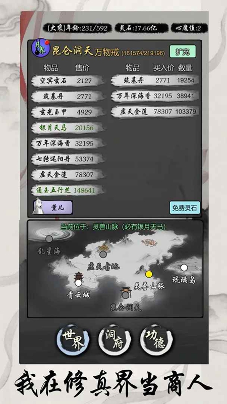 2.双界贸易系统:自由往返人间市集与仙界秘境,利用两界物价差进行跨维度倒卖,低买高卖赚取百倍利润。