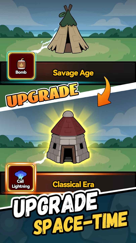1.跨时代史诗剧情:玩家将带领文明从石器时代一路进化至现代都市,甚至未来世界。每个时代都有独特的背景故事和玩法,从刀耕火种的原始部落到高楼林立的科技之城,每一次时代跃迁都伴随着资源争夺与文明突破,带来沉浸式体验。